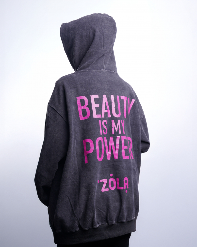 Серое худи ZOLA Beauty Is My Power объединяет комфорт, стиль и уверенность. Oversize-силуэт делает образ современным и расслабленным.